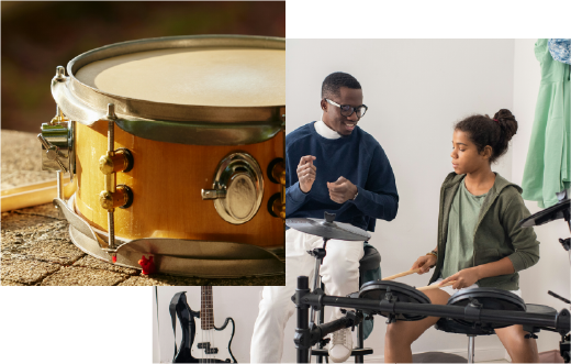 Our drums lessons are available in 30, 45, and 60-minute formats — designed to fit the age, experience level, and goals of each student. Most beginners start with 30-minute sessions and progress to longer lessons as their skills develop. We recommend 60-minute lessons for intermediate and advanced students working toward performance or audition goals.